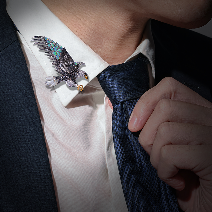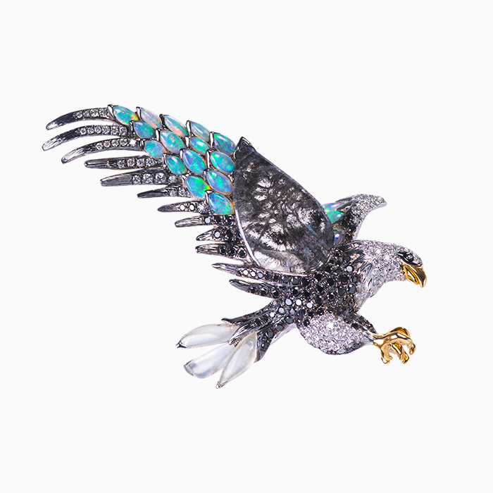 Made of 18K gold and 18K white gold, Diamond Slice, Ice Jadeite, Opal, Black Diamond, and Diamond.