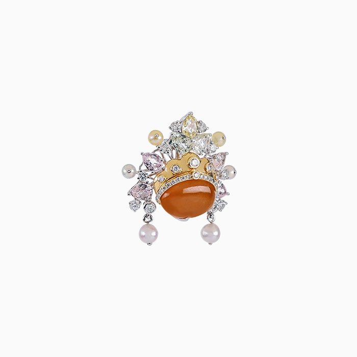 Made of 18K gold and 18K white gold, Burmese Yellow Jadeite, Japanese Pearl, Colored Corundum, and Diamond. Convertible brooch and pendant. ・Limited Mini LianPu collection № 29