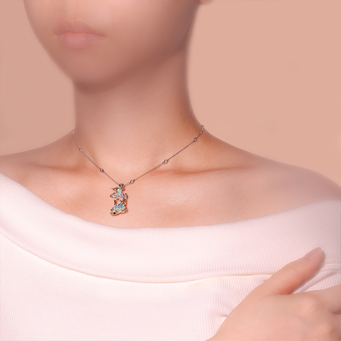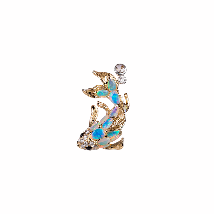 Made of 18K gold and 18K white gold, Opal, Rose Cut Diamond, and Diamond.