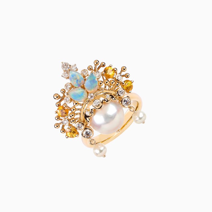 Made of 18K gold, Akoya Pearl, Yellow Sapphire, and Diamond. ・Limited Mini LianPu collection № 77