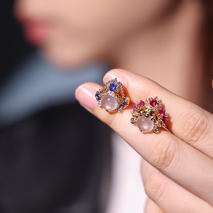 Made of 18K gold, Burmese Ice Jadeite, Sapphire, Ruby, Pink Sapphire and Diamond. ・Limited Mini LianPu collection № 61