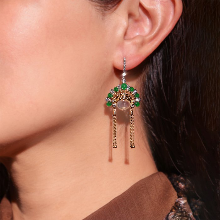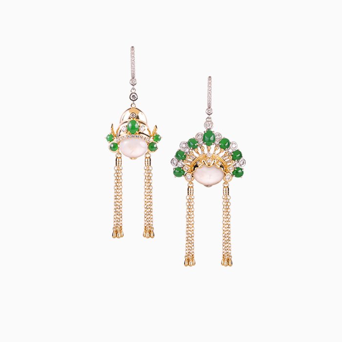 Made of 18K gold and 18K white gold, Burmese Ice Jadeite, Burmese Jadeite, and Diamond.