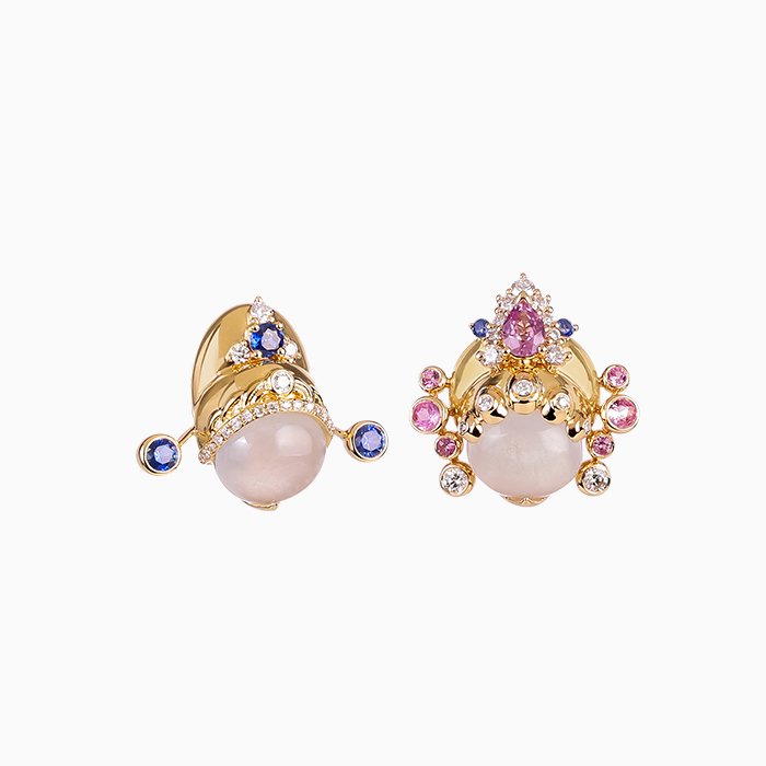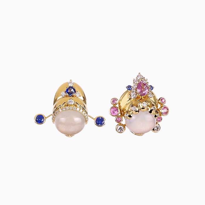 Made of 18K gold, Burmese Ice Jadeite, Sapphire, Pink Sapphire, Colored Corundum, and Diamond. ・Limited Mini LianPu collection № 67
