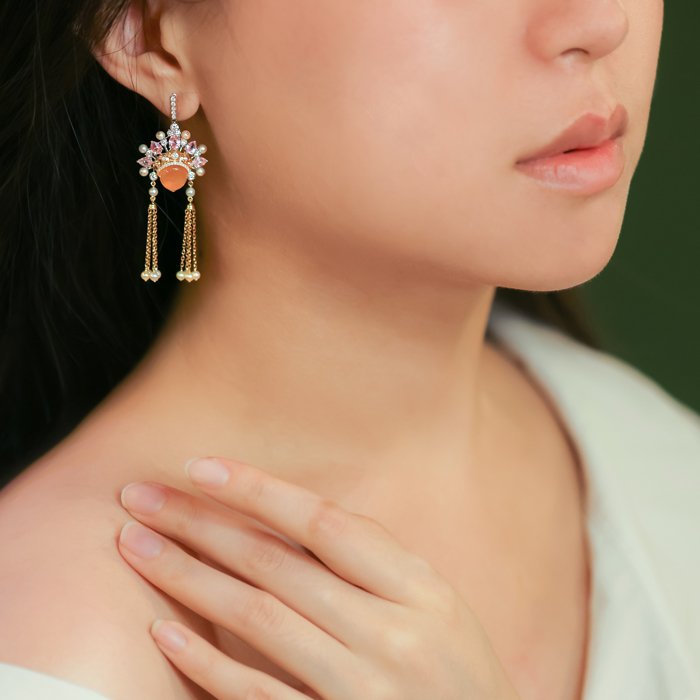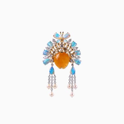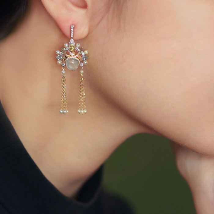 Made of 18K gold and 18K white gold, Burmese Ice Jadeite, Burmese Yellow Jadeite, Japanese Pearl, Colored Corundum, and Diamond. ・Limited Mini LianPu collection № 26