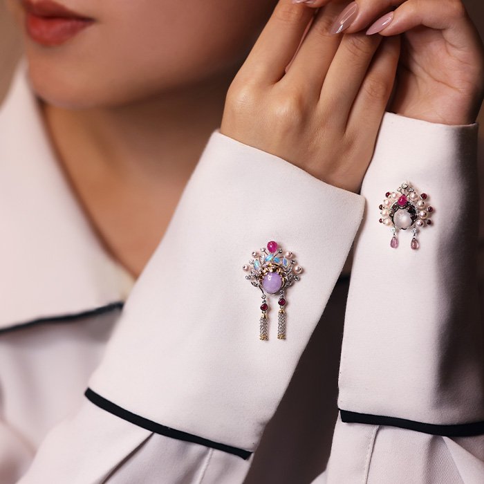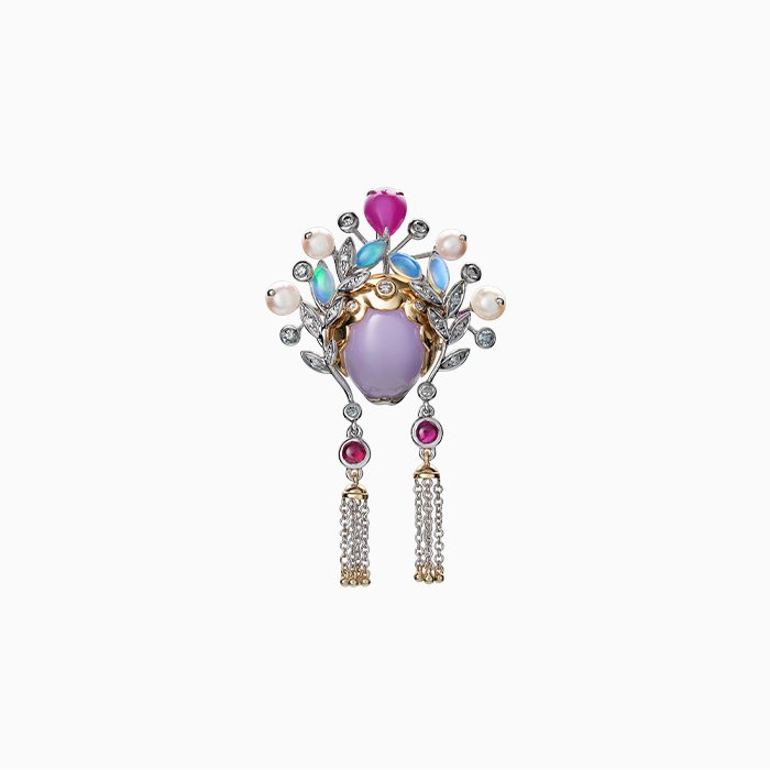 Made of 18K gold and 18K white gold, Burmese Purple Jadeite, Japanese Pearl, Opal, Ruby, and Diamond. ・Limited Mini LianPu collection № 10