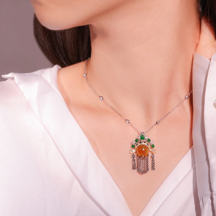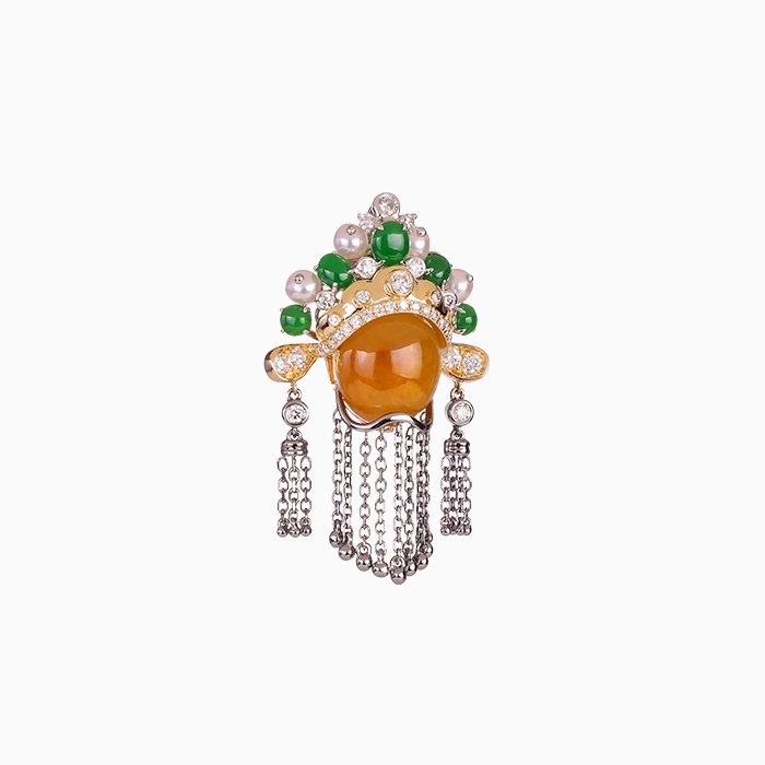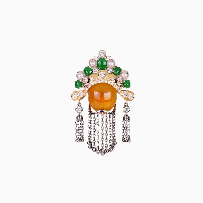 Made of 18K gold and 18K white gold, Burmese Yellow Jadeite, Burmese Jadeite, Akoya Pearl, and Diamond. ・Limited Mini LianPu collection № 81
