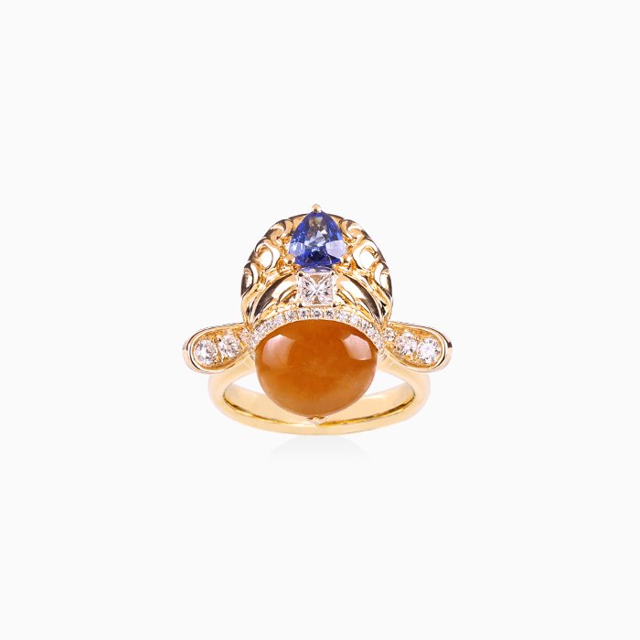 Made of 18K gold, Burmese Yellow Jadeite, Sapphire, and Diamond. ・Limited Mini LianPu collection № 50