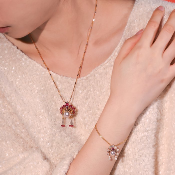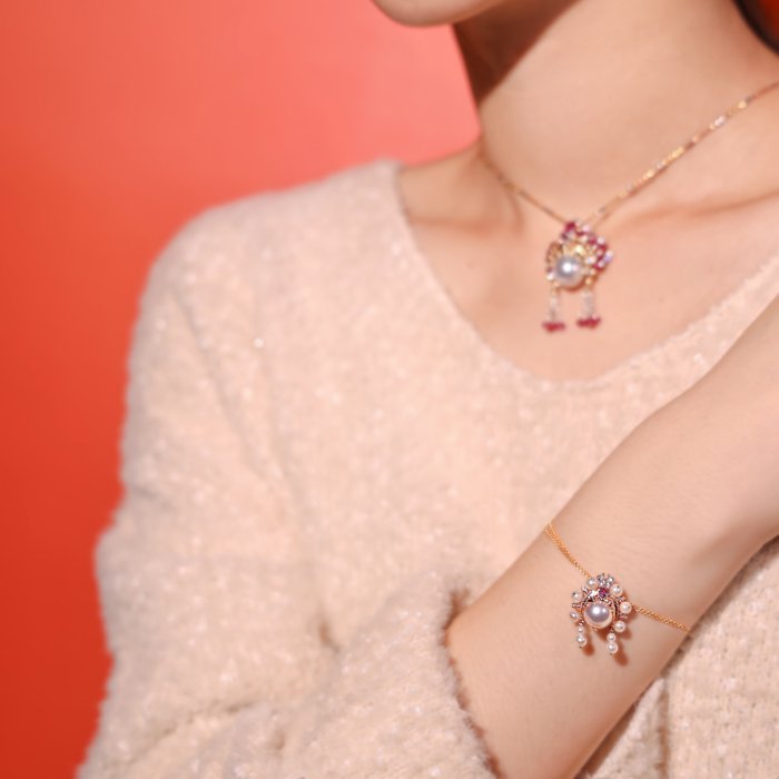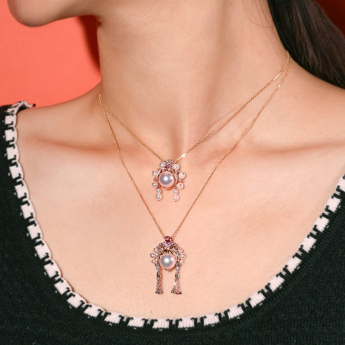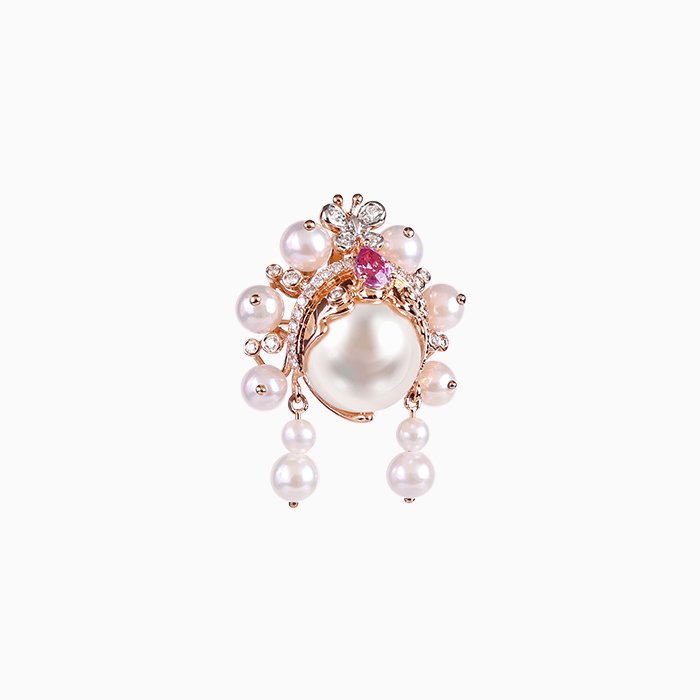 Made of 18K gold, Japanese Pearl, Colored Corundum, and Diamond. Convertible brooch and pendant. ・Limited Mini LianPu collection № 70