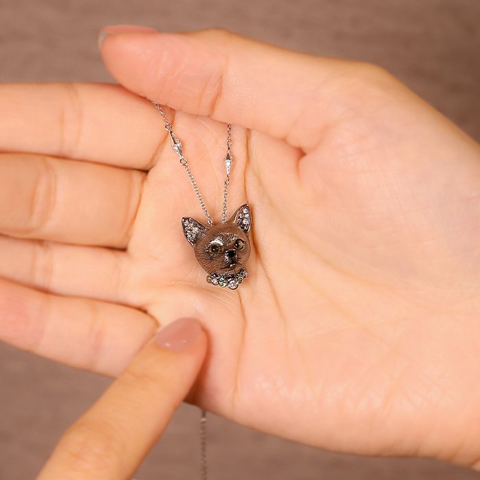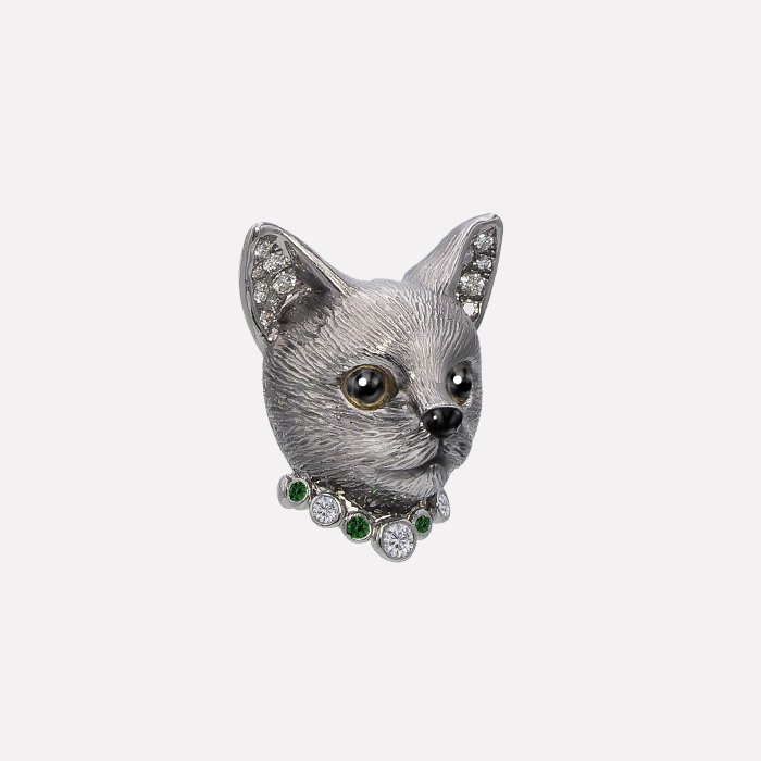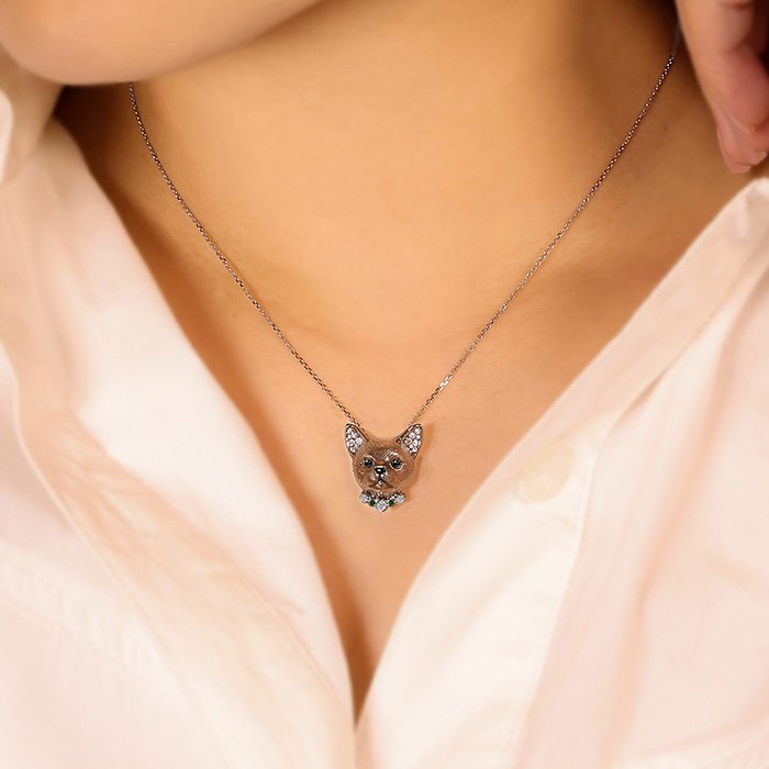 Tsavorite Diamond Pendant Made of 18K black gold and 18K white gold, Tsavorite, Quartz, Black Agate, and Diamond.