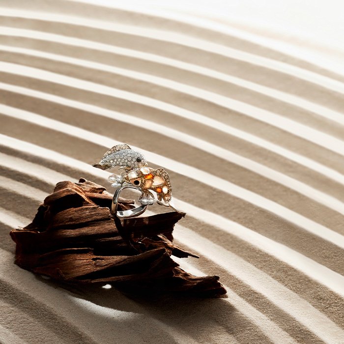 Made of 18K gold and 18K white gold, Opal, Keshi Pearl, H&A Diamond, Black agate, and Diamond.